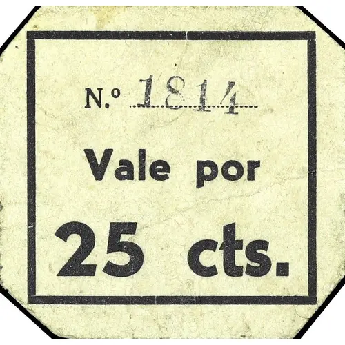 Vale por 25 cts. (Translation: Voucher for 25 Centimos) |