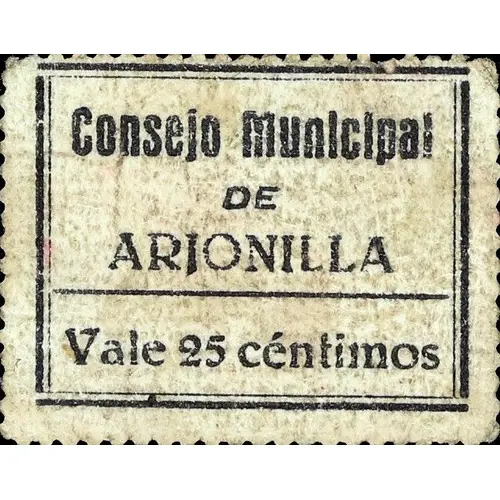 Consejo Municipal DE ARJONILLA Vale 25 céntimos (Translation: Municipal Council of Arjonilla Value 25 Centimos) |