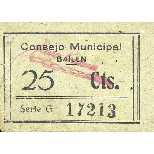 Consejo Municipal BAILÉN 25 Cts. (Translation: Municipal Council Bailén 25 Centimos) |