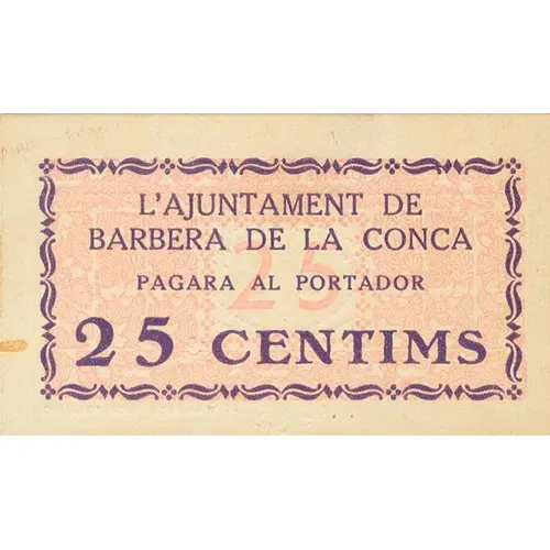 Ajuntament de Barberà de la Conca CENTIMS 25 CENTIMS (Translation: City Council of Barberà de la Conca 25 Centimos) |