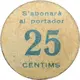 S`abonarà al portador 25 CÈNTIMS (Translation: It will be paid to the bearer 25 Centimos) |