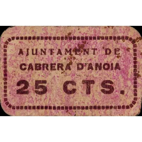 AJUNTAMENT DE CABRERA D`ANOIA 25 CTS. (Translation: City Council of Cabrera d`Anoia 25 Centimos) |