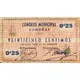 0`25 CONSEJO MUNICIPAL CAMUÑAS VEINTICINCO CENTIMOS de curso legal en la localidad (Translation: Municipal Council Camuñas Twenty-five Centimos legal tender in the town) |