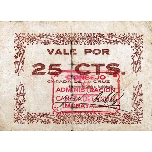 VALE POR 25 CTS. CAÑADA DE LA CRUZ (Translation: Voucher for 25 Centimos Cañada de la Cruz) |