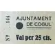 AJUNTAMENT DE COGUL Val per 25 cts. (Translation: City Council of Cogul Voucher for 25 Centimos) |