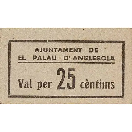 AJUNTAMENT DE EL PALAU D`ANGLESOLA Val per 25 cèntims (Translation: City Council of El Palau d`Anglesola Valid for 25 Centimos) |