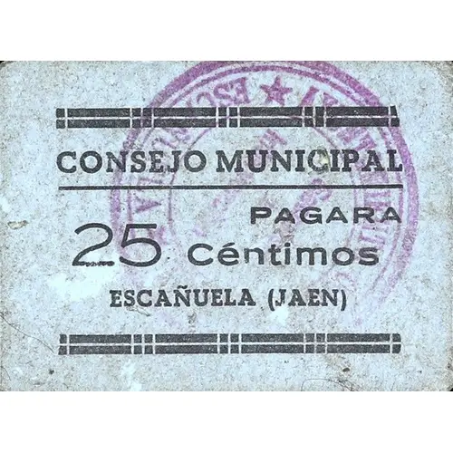 (Translation: Municipal Council Will pay 25 Centimos Escañuela (Jaen))