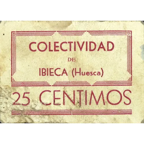 COLECTIVIDAD DE IBIECA (Huesca) 25 CENTIMOS (Translation: Collectivity of Ibieca (Huesca) 25 Centimos) |
