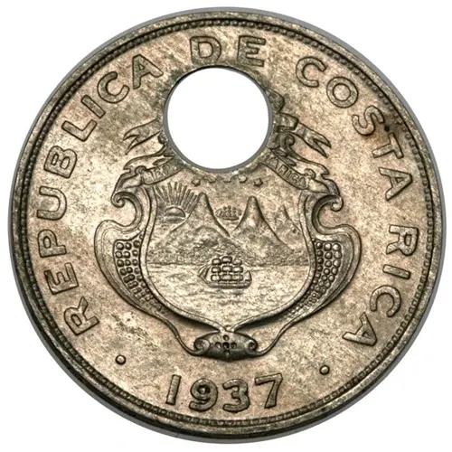 | Obverse lettering | · REPUBLICA DE COSTA RICA · AMERICA CENTRAL REPUBLICA DE COSTA RICA 1937 (Translation: Republic of Costa Rica Central America Republic of Costa Rica 1937) |