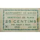 AJUNTAMENT DE MALDA CERTIFICAT DE PLATA 25 CÉNTIMS D`ÚS FORÇÓS A MALDÀ JUNY 1937 (Translation: City Council of Malda Silver Certificate 25 Centimos Of forced use in Maldà June 1937) |