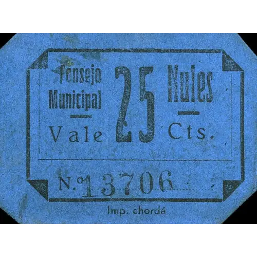 Consejo Municipal Nules Vale 25 Cts. (Translation: Municipal Council Nules It`s worth 25 Centimos) |