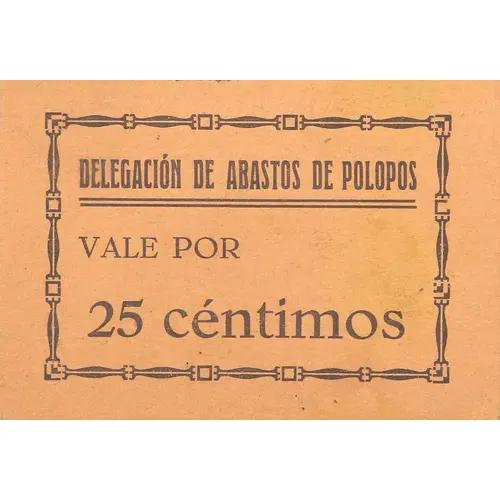 Ön yüz lejandı DELEGACIÓN DE ABASTOS DE POLOPOS VALE POR 25 céntimos