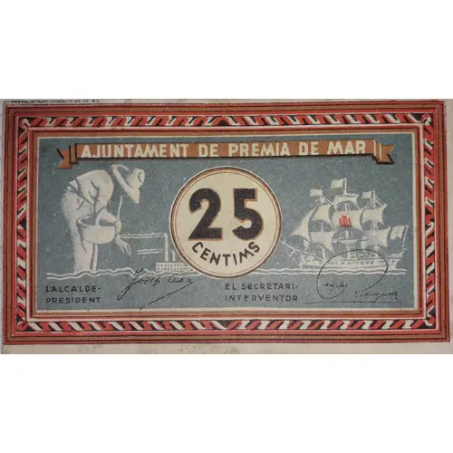 AJUNTAMENT DE PREMIA DE MAR 25 CENTIMS (Translation: City Council of Premià de Mar 25 Centimos) |