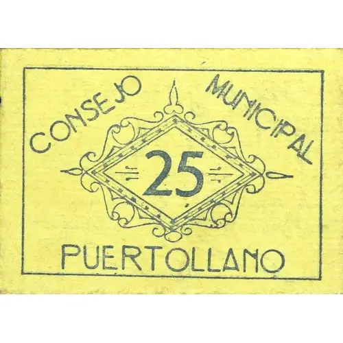 VEINTICINCO CTS. 1º Semptiembre 1937 (Translation: Twenty-five Centimos September 1, 1937) |