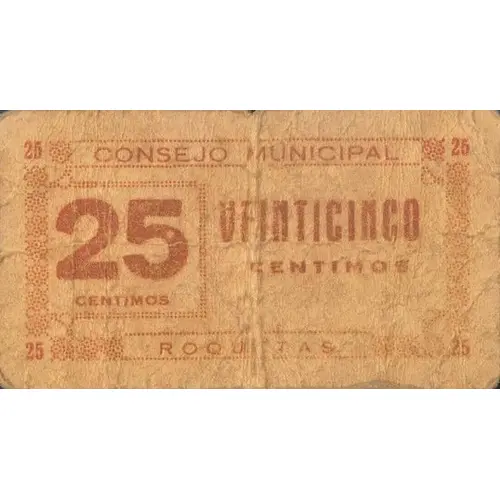 Obverse lettering CONSEJO MUNICIPAL 25 CENTIMOS / VEINTICINCO CENTIMOS ROQUETAS