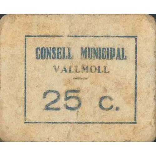 CONSELL MUNICIPAL VALLMOLL 25 c. (Translation: Municipal Council Vallmoll 25 Centimos) |
