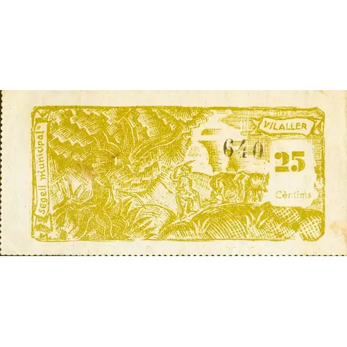 Segell Municipal VILALLER 25 Cèntims (Translation: Municipal stamp Vilaller 25 Centimos) |