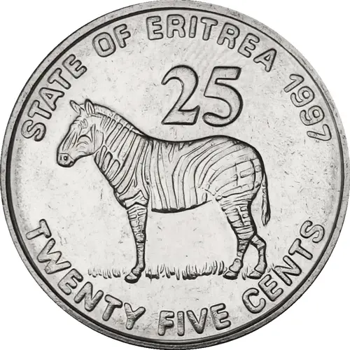 | Obverse lettering | STATE OF ERITREA 1997 25 TWENTY FIVE CENTS |