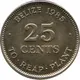 | Reverse lettering | BELIZE 1985 · 25 · CENTS TO · REAP · PLANT |