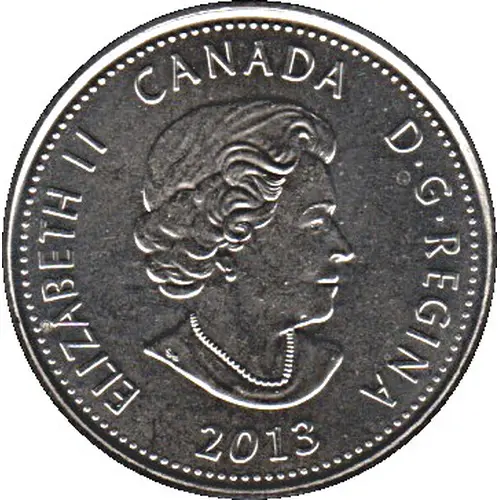 | Legenda do anverso | ELIZABETH II CANADA D•G•REGINA 2013 (Translation: Elizabeth II Queen by the grace of God) |