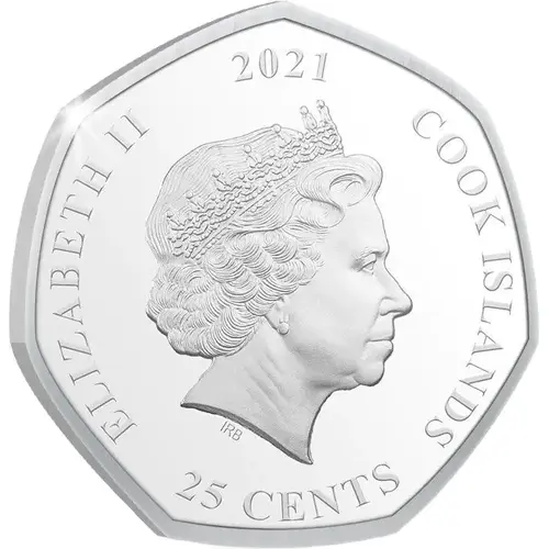 | Obverse lettering | ELIZABETH II 2021 COOK ISLANDS IRB 25 CENTS |
