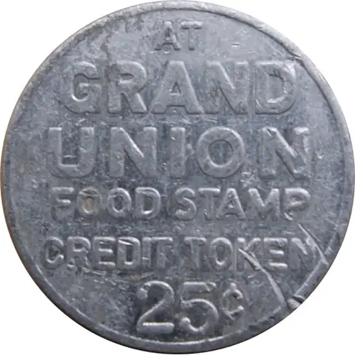 | Obverse lettering | AT GRAND UNION FOOD STAMP CREDIT TOKEN 25¢ |