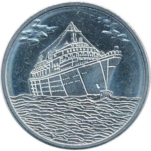 | Obverse description | Front view of cruise ship on the high seas w/ clouds. |
