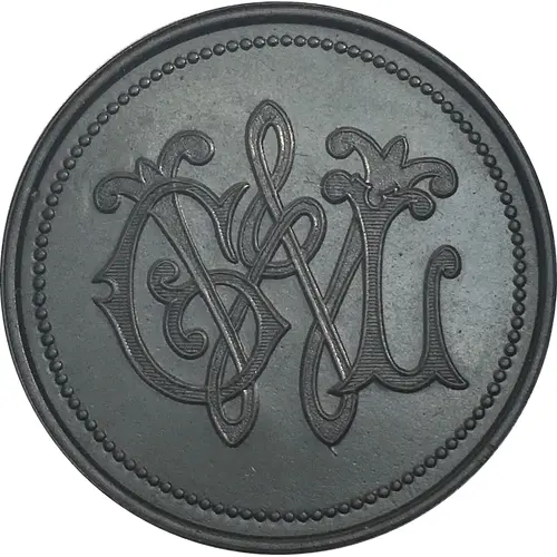 | Obverse description | Monogram within beaded rim inside raised rim. |