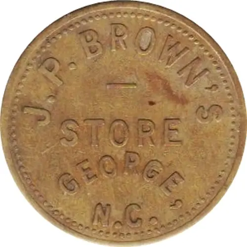 | Obverse lettering | J.P. BROWN`S STORE GEORGE, N.C. |