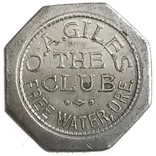| Legenda do anverso | O.A.GILES THE CLUB FREE WATER,ORE. |