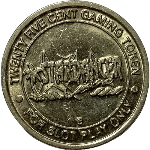 | Obverse lettering | TWENTY FIVE CENT GAMING TOKEN STARDANCER CASINO GDC FOR SLOT PLAY ONLY |