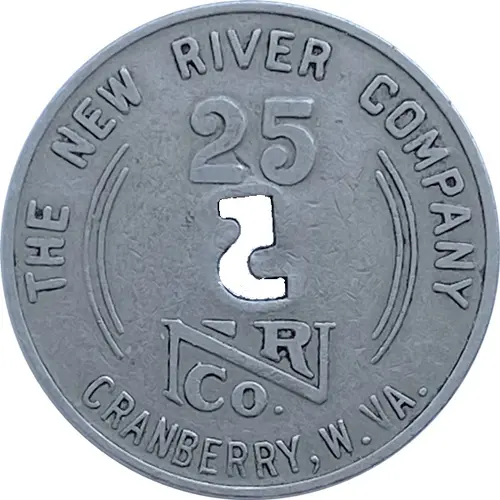 | Obverse lettering | THE NEW RIVER COMPANY 25 N R CO. CRANBERRY, W. VA. |