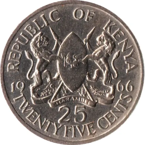 REPUBLIC OF KENYA 1966 HARAMBEE 25 TWENTY FIVE CENTS (Translation: All pull together.) |