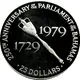 | Reverse lettering | 250th ANNIVERSARY OF THE PARLIAMENT OF THE BAHAMAS 1729 1979 fm • 25 DOLLARS • |