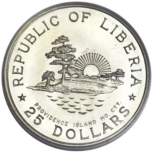 | Obverse lettering | * REPUBLIC OF LIBERIA * PROVIDENCE ISLAND MO. CTY. 25 DOLLARS |