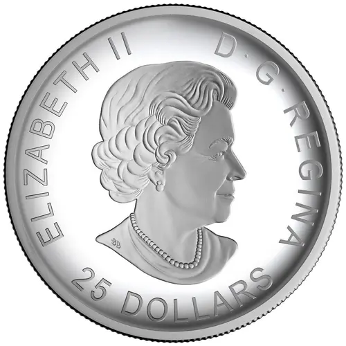 ELIZABETH II D·G·REGINA 25 DOLLARS (Translation: Elizabeth II Queen by the grace of God) |