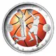 | Reverse description | Basketball in color on convex textured surface, two players and framing basketballs. |