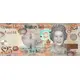 Brown on multicolour underprint. Coat of Arms at right centre, shells around, Queen Elizabeth II at right, denominations in opposite corners. |