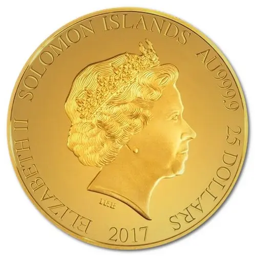 | Obverse lettering | ELIZABETH II SOLOMON ISLANDS AU999.9 25 DOLLARS IRB 2017 |