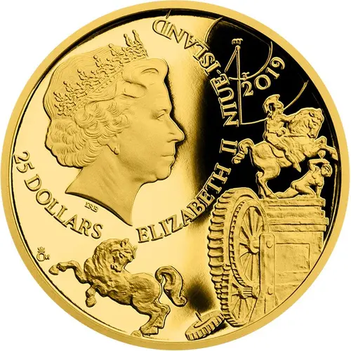 | Obverse lettering | IRB 25 DOLLARS ELIZABETH II NIUE ISLAND 2019 CM |