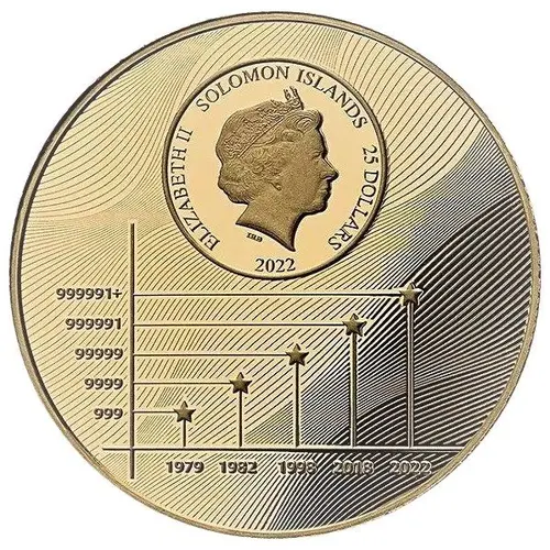 | Legenda del dritto | ELIZABETH II 25 DOLLARS SOLOMON ISLANDS IRB 2022 9999991+ 999991 99999 9999 999 1979 1982 1998 2018 2022 |