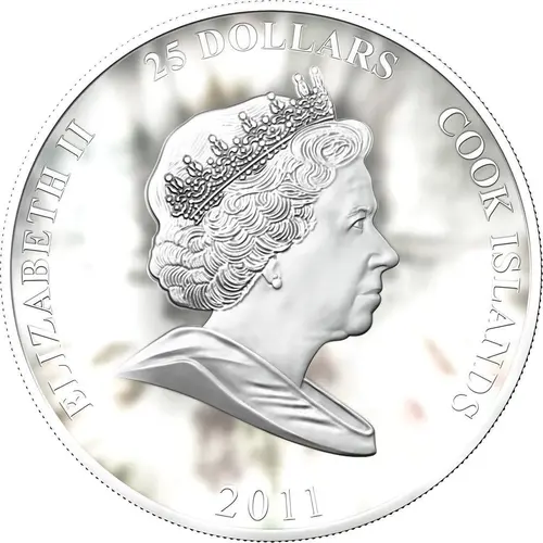 | Obverse lettering | ELIZABETH II 25 DOLLARS COOK ISLANDS 2011 |