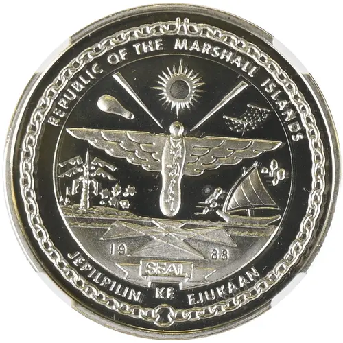 REPUBLIC OF THE MARSHALL ISLANDS 1988 SEAL JEPILPILIN KE EJUKAAN (Translation: Accomplishment Through Joint Effort) |