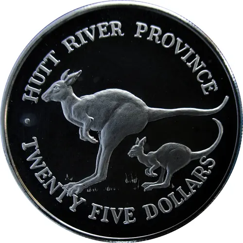 | Obverse lettering | HUTT RIVER PROVINCE • TWENTY FIVE DOLLARS |