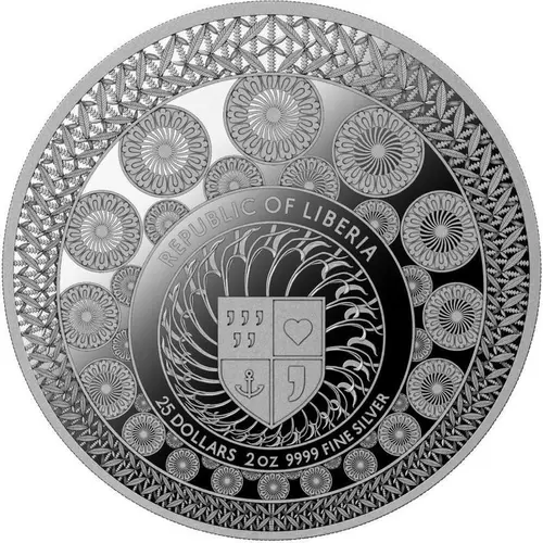 | Obverse lettering | REPUBLIC OF LIBERIA 25 DOLLARS 2 OZ 9999 FINE SILVER |
