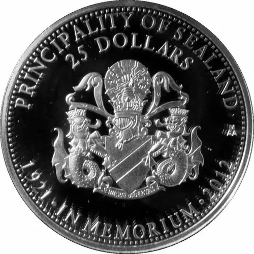 PRINCIPALITY OF SEALAND 25 DOLLARS IN MARE LIBERTAS M AA 1921·IN MEMORIUM·2012 |