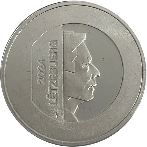 On the right half, a geometrically drawn portrait of His Royal Highness Grand Duke Henri is accompanied, on the left half, by the inscription `LËTZEBUERG` and the year. |