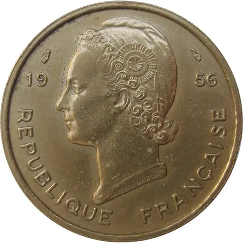 Marianne`s head, facing left, wearing a Phrygian cap. Divided date. NOTE: Privy mark above 19 of date G.B.L. Bazor signature on the collar. |