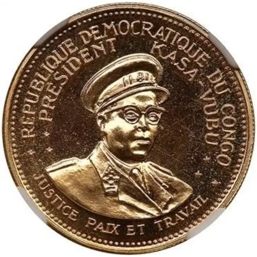 | Obverse lettering | ☆ REPUBLIQUE DEMOCRATIQUE DU CONGO ☆ ☆☆ PRESIDENT KASA-VUBU ☆☆ JUSTICE PAIX ET TRAVAIL (Translation: DEMOCRATIC REPUBLIC OF CONGO JUSTICE PEACE AND WORK) |