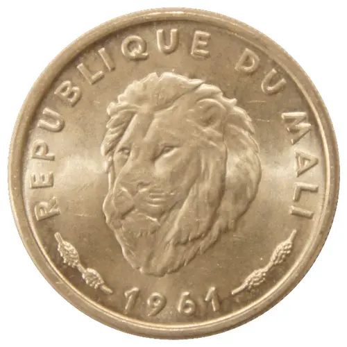 Artistry: While the specific engraver for this coin is not widely documented, its design reflects functional modern coinage aesthetics and nationalistic symbolism. The obverse prominently features the stylized head of a gazelle, a significant animal in Malian culture, facing left, embodying grace and natural heritage. The reverse clearly displays the denomination "25 FRANCS" and "REPUBLIQUE DU MALI" alongside the year 1961, rendered in a straightforward, legible font, typical of early post-colonial African issues.